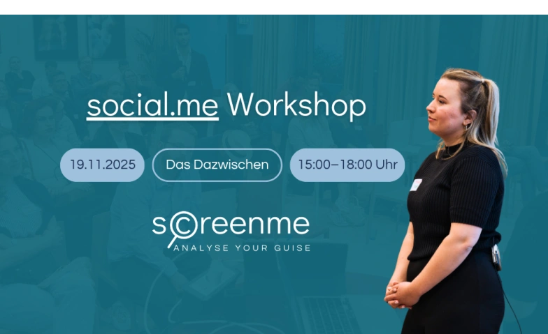 - Während des Workshops werden Foto- und Videoaufnahmen gemacht, die im Anschluss auf den Social-Media-Kanälen von screenme veröffentlicht werden. Mit dem Ticketkauf stimmst du der Erstellung und Nutzung dieser Aufnahmen gemäß der Einwilligungserklärung (hier als AGB benannt) zu.