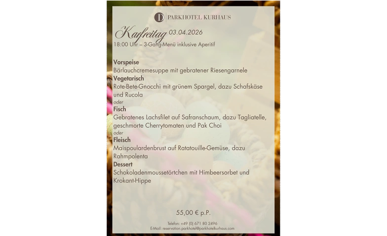 Karfreitag 3-Gang-Menü inkl. Aperitif am Abend