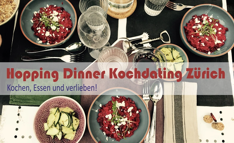 3 Gänge in 3 Privat-Wohnungen, immer neue Leute. Du bekommst einen Kochpartner zugeteilt und zusammen kocht ihr einen Gang und für die anderen beiden Gänge seid ihr bei anderen Teams in Zürich zu Gast.