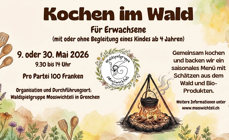 Die erfahrenen Naturpädagoginnen Cordula Frey und Desirée Dubois führen interessierte Menschen, allein, oder in Begleitung eines Kindes ab 4 Jahren, ins Kochen im Wal ein. Mit Schätzen aus der Natur und ausgesuchten Bio-Produkten wird ein saisonales und vegetarisches Menü der besonderen Art über dem Feuer zubereitet. Ob es dann Holunderküchlein oder Brennessel-Chips geben wird, hängt von der Natur ab. Gemeinsam werden einige der benötigten Zutaten achtsam im Wald gesammelt und unter fachkundiger Anleitung zubereitet.