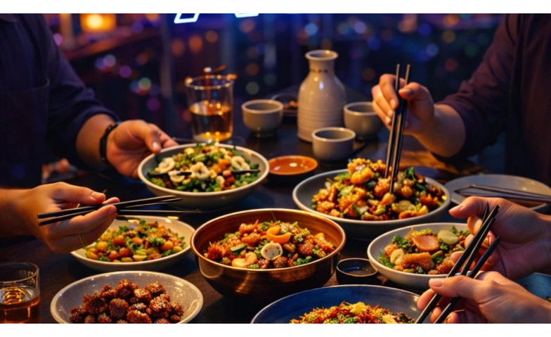 Auf dem Tisch treffen verschiedene Aromen und Texturen aufeinander: sanft und würzig, frisch und tief, vertraut und überraschend. Die Gerichte kommen in die Mitte, werden geteilt, probiert, verglichen. Essen wird zum Austausch, nicht zur Abfolge.