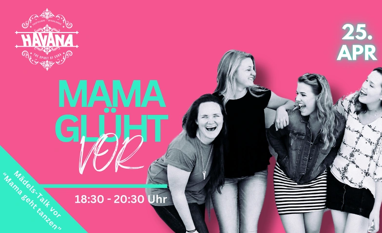 Damit der 💄GIRLS-TALK💄und die perfekte Einstimmung nicht zu kurz kommen, starten wir im HAVANA für die Frühstarter-Mums schon um 18.30 Uhr mit "Mama glüht vor"!