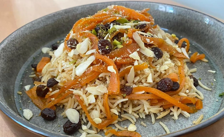- Qabuli Palau (herzhaftes Reisgericht mit Mandeln, Karottenstreifen und Rosinen)