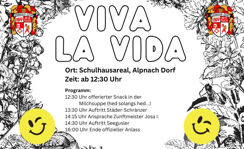 Am 10. Januar 2026 startet Alpnach mit der Tschyfärä Zunft offiziell in die Fasnacht 2026! Ab 12:30 Uhr lädt die Tschyfärä-Zunft zum farbenfrohen Auftakt auf dem Schulhausareal Alpnach Dorf ein. Freut Euch auf einen offerierten Snack ("hed solangs hed..."), musikalische Highlights der Guggenmusiken Städer-Schränzer und Seegusler sowie die Ansprache von Zunftmeister 2026 Josa I.. Gemeinsam feiern wir den Start in eine unvergessliche Fasnachtzeit 2026!