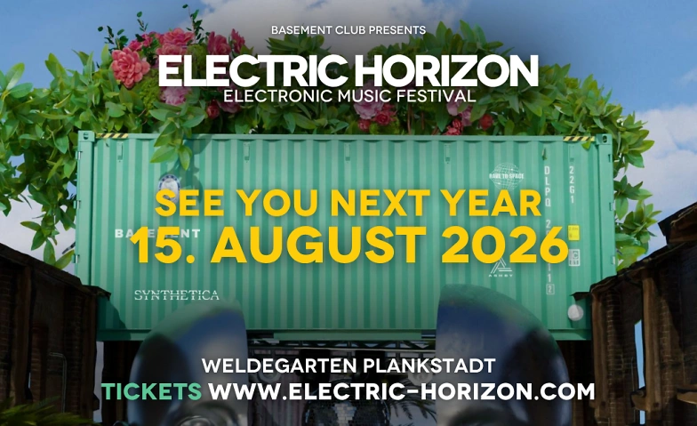 Am 15. August 2026 verwandelt sich der Weldegarten in Plankstadt in ein elektronisches Paradies. Drei Floors, über 20 Artists und ein Line-Up voller Techno, Hardtechno, Trance und 90er-Klassiker sorgen für zehn Stunden pure Energie. Dazu gibt's Sommer-Beach-Vibes mit Palmen, Chill-Out-Spots, Food-Areas, Slush-Cocktails und sogar Tattoo-Artists. Wenn die Sonne untergeht, geht's direkt weiter bei der offiziellen After-Hour. Hol dir dein Ticket und sei Teil des Electric Horizon Festivals - wo Beats und Sommer eins werden.