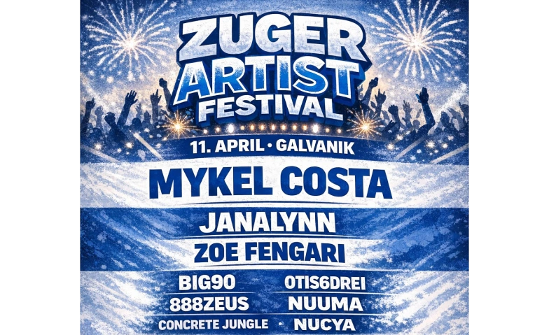 Am 11. April 2026 findet das „Zuger Artist Festival“ im Kulturzentrum Galvanik statt. Das Event beginnt um 20:00 Uhr und endet um 00:00 Uhr. Es werden acht Acts mit Sets à 25 Minuten auftreten. Alle Acts sind junge Zuger Musiker/-innen zwischen 18 und 23 Jahren, die ihre Songs selbst schreiben und produzieren. Der Abend zeichnet sich durch zahlreiche Genrewechsel aus und spiegelt so die künstlerische Vielfalt der jungen Zuger Talente wider. Das musikalische Spektrum reicht von Singer-Songwriter-Balladen über Indiepop-Produktionen bis hin zu Strassenrap und EDM-Songs. Average The Boy führt sie als Moderator durch den Abend und unterstützt die Rap-Acts als DJ. Es soll ein Abend zur Feier der jungen Zuger Kultur sein und die Beziehungen der kreativen Köpfe untereinander stärken.