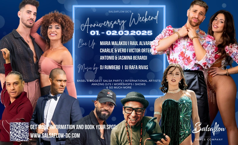 Die Workshops finden am Samtsag, 28. März und Sonntag, 29. März im Salsaflow DC Tanzstudio an der Elisabethenanlage 7, 4051 Basel statt. Wir bieten verschiedenste Kurse mit unseren eingeladenen Artisten an. Ob Salsa On 1 oder Salsa On2, ob Intermediate oder Advanced Level, hier ist für dich als Salsa-Liebhaber ganz sicher etwas dabei.