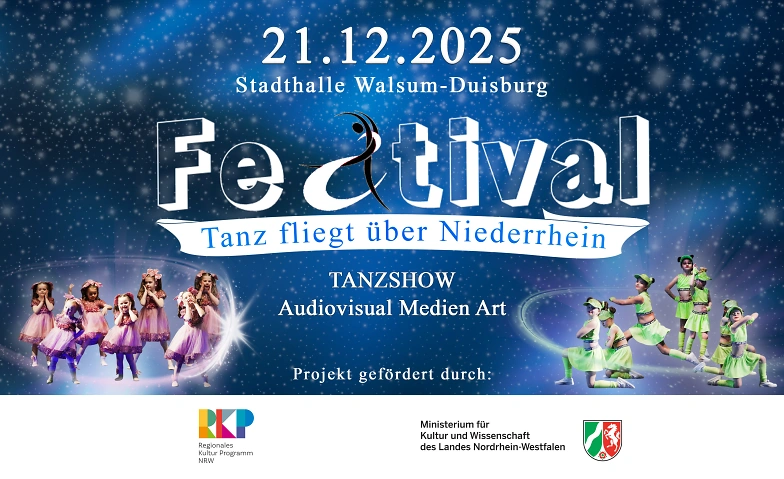 Das Festival "Tanz fliegt über Niederrhein" präsentiert darstellende Kunst im Tandem mit innovativen Medien Art Formaten und schafft zeitgenössischer Ästhetik auf höchsten Niveau. Das Projekt präsentiert eine breite Palette von Tanzkunst auf innovative Weise und verbindet eine Vielzahl von Amateur-Tanzschulen und professionellen Künstlern auf einer Bühne.
