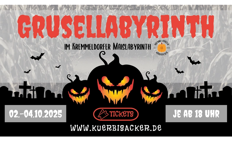 Grusellabyrinth am 02.10.2025 Kremmeldorfer Maislabyrinth, Am Gries, 96117 Memmelsdorf Tickets