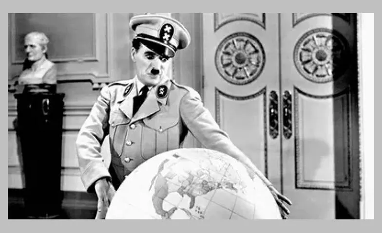 „The Great Dictator“ entstand 1940 als mutige Satire auf Adolf Hitler und den Nationalsozialismus. Chaplin hält in seinem ersten Tonfilm gleich zwei grosse Reden: Einmal in fiktionaler Sprache als Adolf-Hitler-Parodie Adenoid Hynkel (in der deutschen Fassung Anton Hynkel genannt) und einmal als jüdischer Barbier, der zu Toleranz, Menschlichkeit und Weltfrieden aufruft. Beide Sequenzen sind in die Kinogeschichte eingegangen.