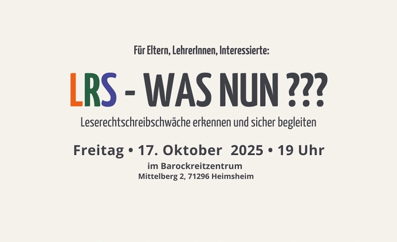 Vortrag in Heimsheim: LRS erkennen und Kinder sicher begleit Barockreitzentrum Eventlocation, Mittelberg 3, 71296 Heimsheim Tickets