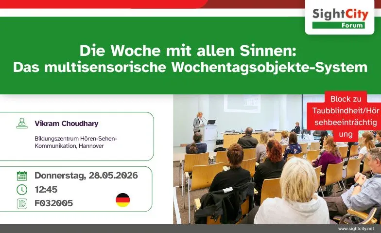 Grundkonzept: • Ein inklusives Wochentagssystem mit einzigartigen multisensorischen Identifikatoren hilft taubblinden Schülern, ein besseres Verständnis für den wöchentlichen Zeitablauf zu entwickeln, sodass sie ihre täglichen Routinen selbstständig erkennen, antizipieren und strukturieren können und gleichzeitig ein umfassenderes Zeitbewusstsein entwickeln.