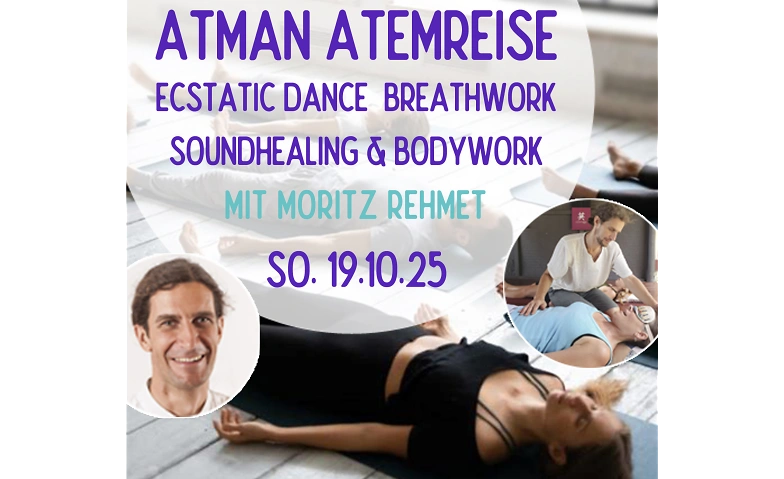 Bei der Atman Atemreise verbindet Moritz Breathwork zum Auftakt mit Ecstatic Dance und zur Integration mit Klangheilung durch tibetische Planetenton Klangschalen sowie mit unterstützender Körperarbeit durch Craniosacral Therapie.