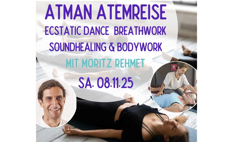 Für die ATMAN Atemreise verbindet Moritz Breathwork zum Auftakt mit Ecstatic Dance und zur Integration mit Klangheilung durch tibetische Planetenton Klangschalen sowie mit unterstützender Körperarbeit durch Craniosacral Therapie.