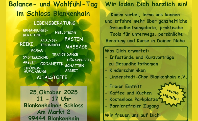 Balance- und Wohlfühl-Tag im Schloss Blankenhain Schloss Blankenhain, Am Markt 2, 99444 Blankenhain Tickets