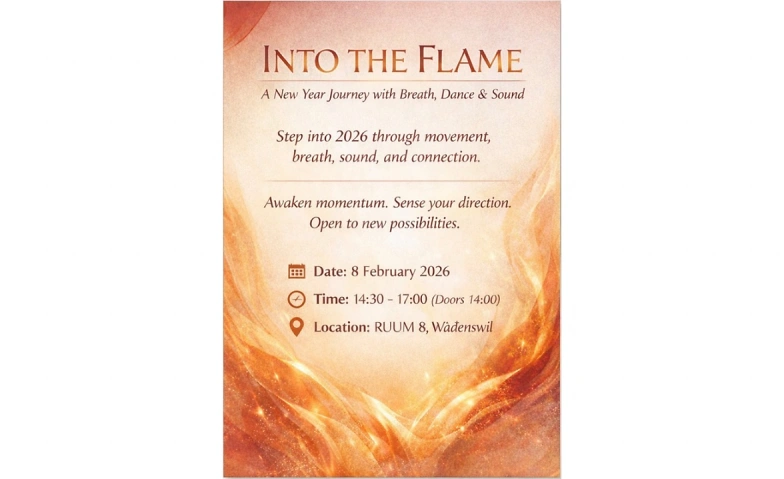 Into the Flame ist eine verkörperte Neujahreserfahrung, die dich einlädt, dem Jahr 2026 durch Atem, Bewegung, Klang und Verbindung zu begegnen.