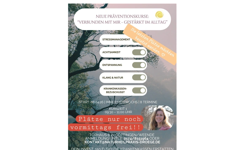 Die letzten Plätze meines Stress-Präventionskurses "Verbunden mit mir - gestärkt im Alltag" möchten gefüllt werden.