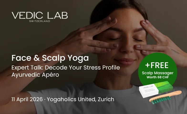Whether you're looking to learn something new, meet like-minded people, or simply take a moment for yourself — this evening has something for everyone. We'll move through a face and scalp yoga session, decode our stress profile, and close with an Ayurvedic apéro and good conversation.
