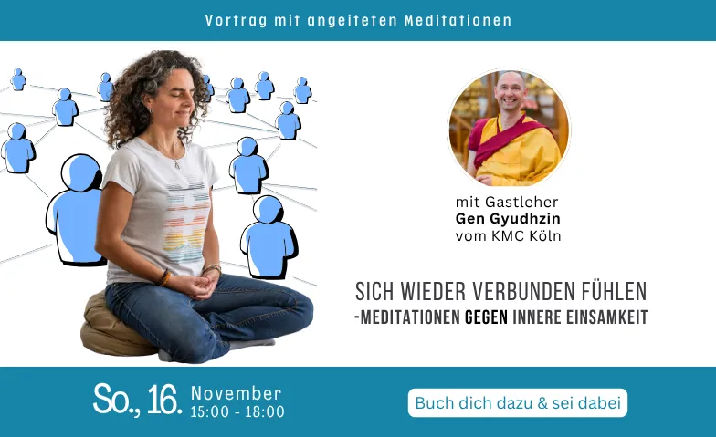 In zwei Sitzungen vermittelt Gen Gyudzhin, ansässiger Lehrer des Kadampa Meditationszentrums Köln, leicht verständliche und sehr praktische Meditationen, die dir helfen können, dich aus dem inneren Gefühl der Einsamkeit zu lösen und wieder Vertrauen, Liebe und Nähe zu entwickeln.
