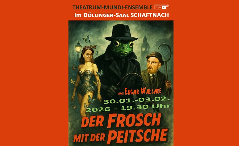 DER FROSCH MIT DER PEITSCHE nach Edgar Wallace Tickets DER FROSCH MIT DER PEITSCHE nach Edgar Wallace Dienstag, 03.02.2026, 19:30 Uhr Gaststätte Döllinger, 91126 Schwabach, DE Tickets