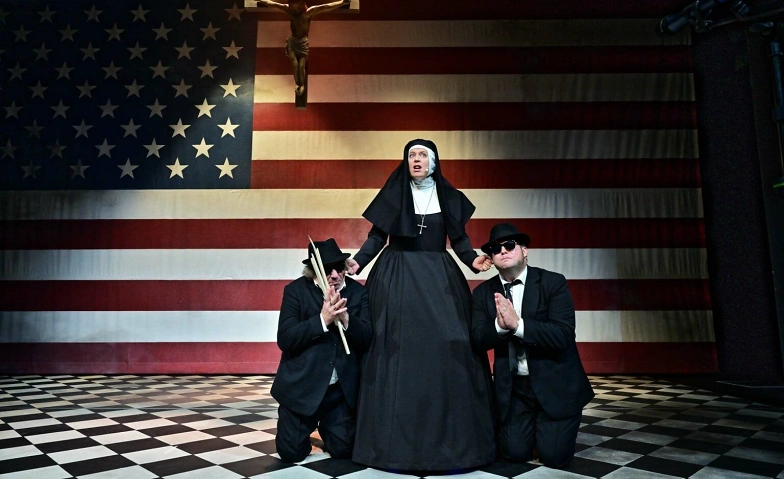 Die Brüder wollen helfen – doch wie sollen sie auf ehrliche Weise zu so viel Geld kommen? Während eines Gottesdienstes hat Hans die Erleuchtung: Sie müssen nur ihre alte Band, die „Blues Brothers“, für ein Benefizkonzert wieder zusammentrommeln. Und so machen sich die beiden, ausgerüstet mit einem klapprigen Mofa, auf einen legendären musikalischen Roadtrip durch die baden-württembergische Provinz: Von Hans‘ rachsüchtiger verflossener Geliebter verfolgt, legen sie sich nicht nur mit einer Countryband, sondern am Ende mit sämtlichen Gesetzeshüter*innen an und verursachen Chaos, wo immer sie auftauchen.