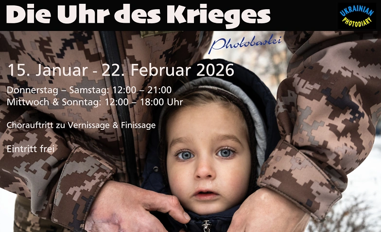 Die Uhr des Krieges – Das Ukrainische Fototagebuch | Mittwoch, 21.01.2026, 12:00 Uhr | Photobastei | 3. Stock, 8005 Zürich, CH | Infos | |