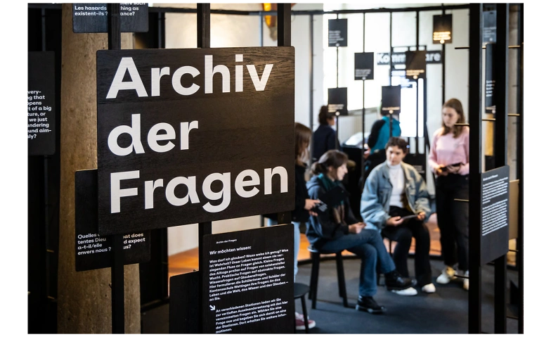 Jeweils am Wochenende begrüssen Schülerinnen und Schüler der Kantonsschule Wettingen die Museumsgäste im Parlatorium. Im "Archiv der Fragen" wird über Generationen hinweg lustvoll diskutiert, philosophiert – und vermeintlich Wahres infrage gestellt. Verschiedene Beiträge von Schülerinnen und Schülern liefern zudem Anregungen für eigene Gedanken und Gespräche.