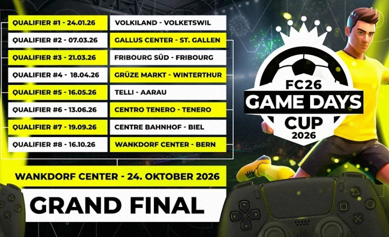 #7 FC26 GAME DAYS CUP | Samstag, 19.09.2026, 10:00 Uhr | Centre Bahnhof Biel, 2503 Biel, CH | Tickets | |