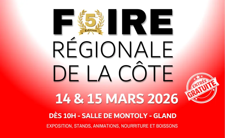 Foire Régionale de la Côte - 5ème édition Tickets Foire Régionale de la Côte - 5ème édition Sonntag, 15.03.2026, 10:00 Uhr Salle de Montoly, 1196 Gland, CH Infos