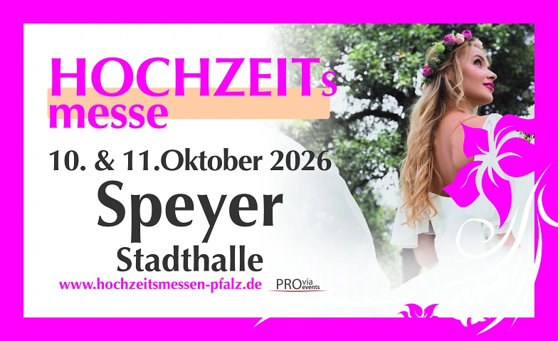 Hochzeitsmesse Speyer Tickets Hochzeitsmesse Speyer Samstag, 10.10.2026, 10:00 Uhr Stadthalle Speyer, 67346 Speyer, DE Tickets