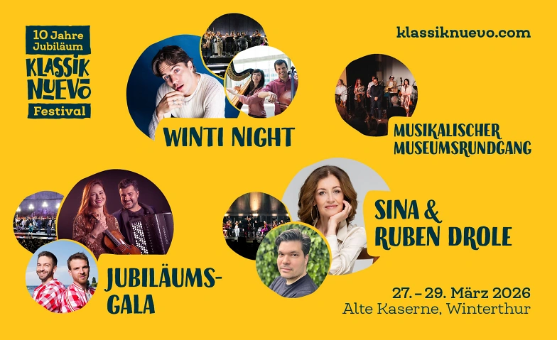 Klassik Nuevo Festival Winterthur - Jubiläums-Gala Tickets Klassik Nuevo Festival Winterthur - Jubiläums-Gala Freitag, 27.03.2026, 20:00 Uhr Alte Kaserne Winterthur, 8400 Winterthur, CH Tickets