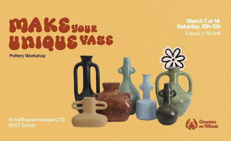 Make Your Unique Vase - Pottery Workshop Tickets Make Your Unique Vase - Pottery Workshop Samstag, 14.03.2026, 10:00 Uhr CeramicsOnWheels Studio, 8057 Zürich, CH Tickets