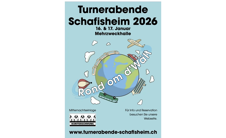 Die Turnerabende Schafisheim sind zurück. Unter dem Motto "Rond om d'Wält" laden wir Sie ein, einen unvergesslichen Abend bei uns zu geniessen.