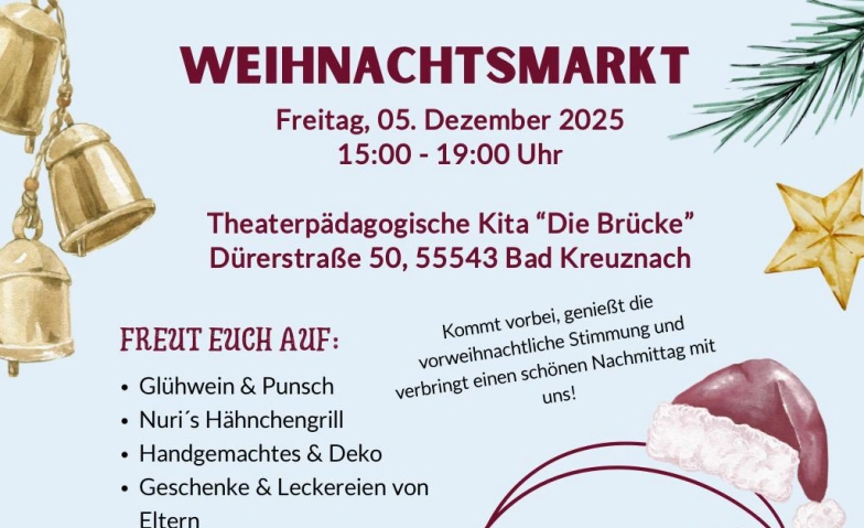 Weihnachtsmarkt der Theaterpädagogischen Kita „Die Brücke“ Theaterpädagogische Kita Die Brücke, Dürerstraße 50, 55543 Bad Kreuznach Tickets