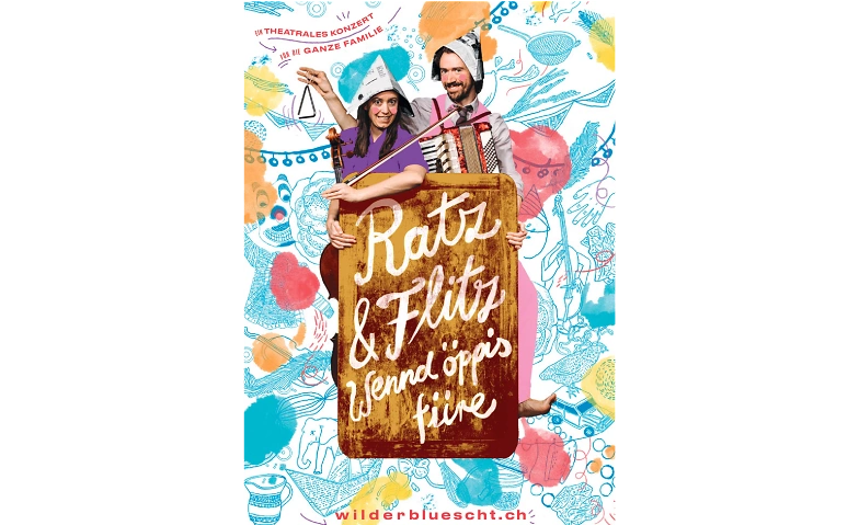 Ein theatrales Konzert für die ganze Familie. Ratz & Flitz haben Lust ein Fest zu feiern um das neue Jahr einzuläuten und zwar so ein Richtiges, mit allem was dazugehört. Dabei singen sie (und jodeln!) - aber anders als du denkst. Denn wer sonst begleitet seine Lieder mit Putzkübel, Getreidekörnern, Kontrabass, Schwingbesen, Cello, Handtüechli, Zeitung, Örgeli und weiteren lustigen Instrumenten und Instrumentchen?