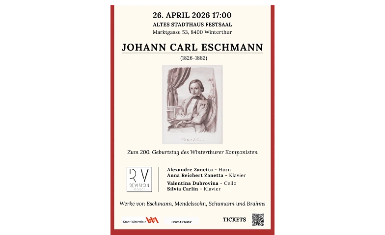 Zum 200. Geburtstag des Winterthurer Komponisten Johann Carl Eschmann (1826–1882) widmet sich dieses besondere Jubiläumskonzert seinem musikalischen Erbe.