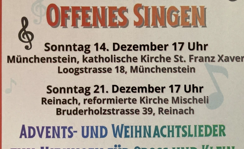 Advents- und Weihnachtslieder Singen St. Franz Xaver, Loogstrasse 18, 4142 Münchenstein Tickets