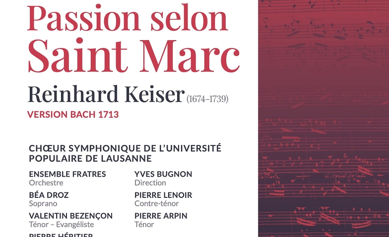 Le Chœur symphonique de l’Université populaire de Lausanne vous invite à un moment musical fort avec La Passion selon Saint Marc de Reinhard Keiser, une œuvre rare et profondément émouvante, dirigée à son époque par Jean-Sébastien Bach lui-même.