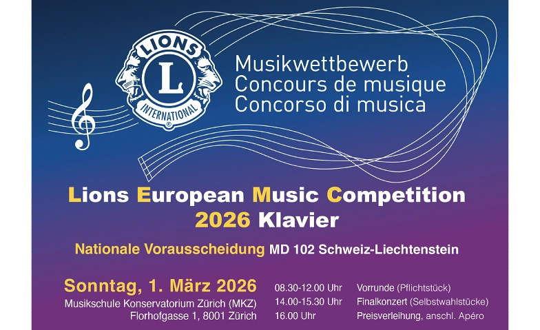Die Schweizer Vorausscheidung für den europäischen Wettbewerb im Oktober findet am 1. März 2026 in Zürich statt. Vormittags werden bis 18 Teilnehmende das Pflichtstück der Jury vorspielen. Am Nachmittag findet dann die 2. Runde mit noch 6 Teilnehmenden statt, welche ein Freiwahlstück aus der vorgegebenen Repertoireliste vortragen werden.