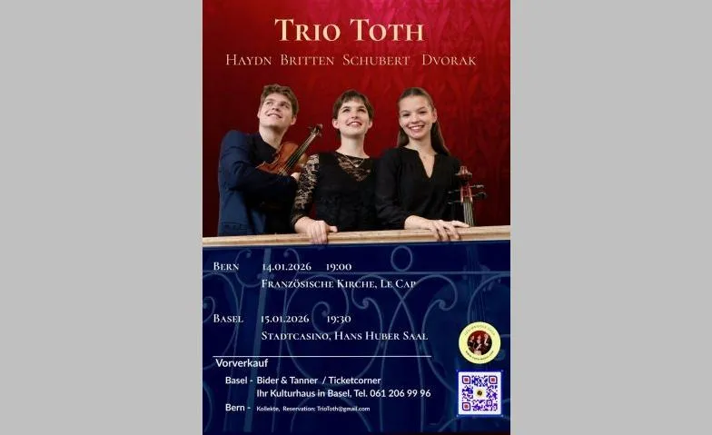 Wenn das Geschwistertrio Toth die Bühne betritt, entsteht etwas Unverwechselbares: es begeistert durch tiefe Musikalität, beeindruckendem familiärem Zusammenspiel und einem feinen Gespür für Klangfarben. Mit stilistischer Sensibilität nehmen sie uns mit auf eine Reise durch die reiche Klaviertrio Literatur dreier Jahrhunderte. Den Auftakt bildet Joseph Haydns Klaviertrio in C-Dur – ein Werk voll spielerischer Eleganz und feinem Esprit, entstanden während einer Reise nach England. Mit Leichtigkeit und Raffnesse entfaltet es Haydns charakteristischen Witz und wegweisende kammermusikalische Handschrift. Benjamin Brittens Trio Introduction and Allegro ist eine Rarität und gibt uns einen faszinierenden Einblick in das Frühwerk des britischen Komponisten. Das Stück entführt uns in sphärisch firrende Klangwelten und überrascht zugleich mit volksmusikalisch inspirierten Elementen und pointierter Rhythmik. Lyrisch und tief empfunden präsentiert sich Franz Schuberts „Notturno“ – ein musikalisches Kleinod voller inniger Melodik, subtiler Klanggestaltung und harmonischer Subtilität. Schuberts poetische Tonsprache verleiht dem Werk eine zeitlose Schönheit. Den abschliessenden Höhepunkt des Abends bildet das groß angelegte Klaviertrio Nr. 3 von Antonín Dvořák. Dieses leidenschaftliche,...