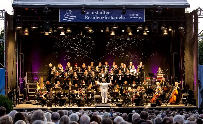 Solistinnen und Solisten, der Konzertchor Darmstadt sowie die Darmstädter Hofkapelle unter der Künstlerischen Leitung von Wolfgang Seeliger präsentieren berühmte Ouvertüren, Arien und Chöre. In der eindrucksvollen Kulisse der Open-Air-Bühne auf dem Weltkulturerbe Mathildenhöhe verbinden sich Musik, Architektur und Sommerabend zu einem festlichen Gesamterlebnis.