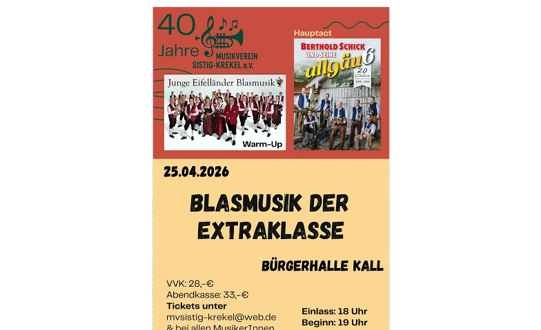 Am 25.04.2026 lädt der Musikverein Sistig-Krekel zu einem Abend feinster Blasmusik ein.