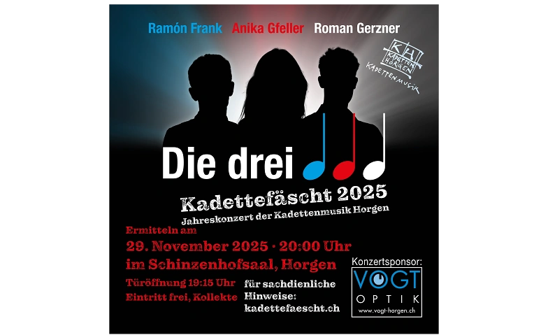 DIE DREI  - Kadettefäscht 2025 im Schinzenhofsaal, Horgen, Alte Landstrasse 24, 8810 Horgen Tickets