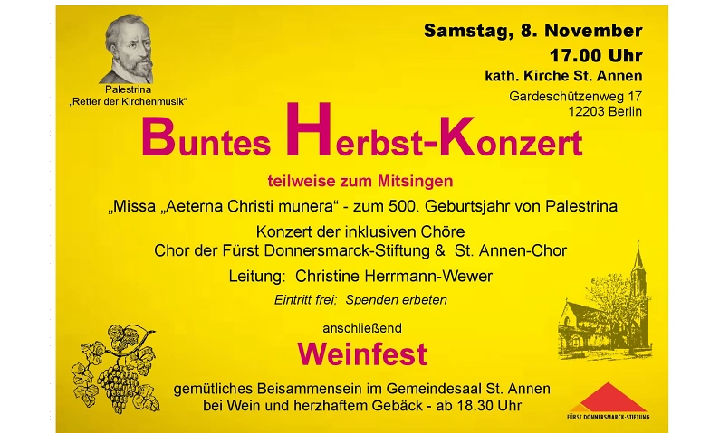 Buntes Herbst-Konzert - teilweise zum Mitsingen Kath. Kirche St. Annen, Gardeschützenweg 17, 12203 Berlin Tickets