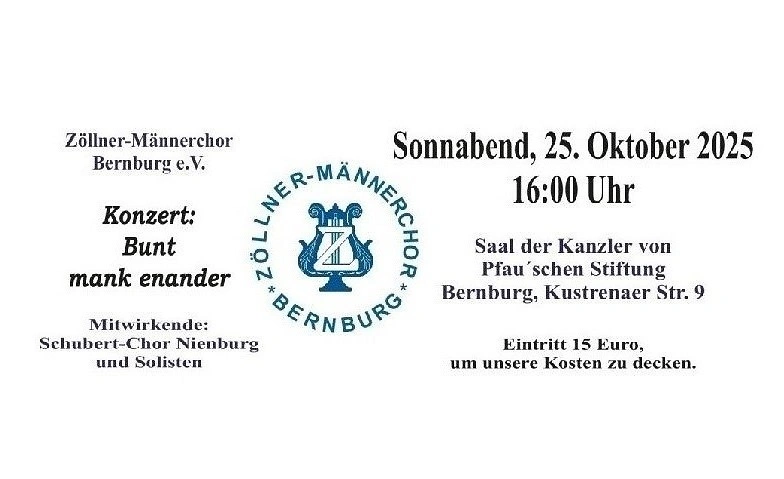 Herbstkonzert des „Zöllner-Männerchores Bernburg“ wird organisiert durch: