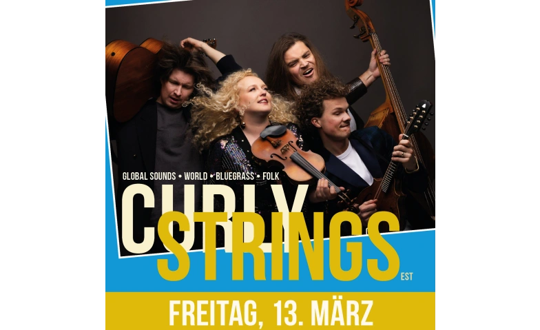 GLOBAL SOUNDS • WORLD • BLUEGRASS • FOLK │ Die estnische Band Curly Strings verbindet nordische Folk-Traditionen mit modernem Songwriting und grosser Virtuosität. Mit Geige, Mandoline, Gitarre und Kontrabass schaffen sie einen unverwechselbaren Klang voller Energie und Wärme. Ihre Musik reicht von zarten, emotionalen Momenten bis zu mitreissender Spielfreude – immer authentisch, nah am Publikum und voller Überraschungen. Ein Konzerterlebnis, das Herz und Ohr gleichermassen berührt.