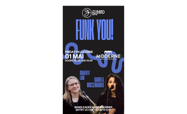 Mit von der Partie ist die Multiinstrumentalistin, Komponistin und Improvisatoren Charlotte Lang, musizierend im Swiss Jazz Orchestra, dem Basel Jazz Orchestra sowie ihrer eigenen Band, der Charlotte Lang Group u.v.a.m. Sie wird mit der Funkyou Bigband als Alt- und Baritonsaxophonistin in neue musikalische Sphären vordringen: Zum einen wird im Mai 2026 der satte und groovende Klangkörper der Funkyou Bigband um ihre klanglich vielseitige und weltoffene Jazzsprache ergänzt. Zum anderen werden einige von Langs Kompositionen eigens für die Konzerte in Luzern und Sursee arrangiert und aufgeführt.