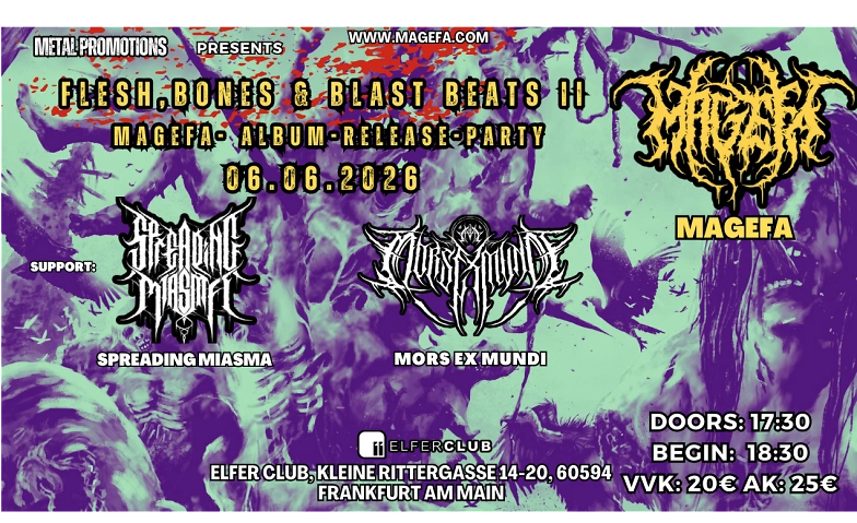 Flesh, Bones and Blast Beats II – MAGEFA Album-Release-Party Elfer Musik Club, Kleine Rittergasse 14-20, 60594 Frankfurt am Main Tickets