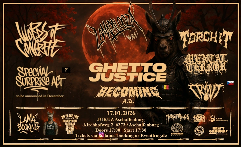 Mit unserer ersten Showcase unter dem Namen LaMaPalooza servieren wir euch am 17. Januar 2026 frei nach dem Motto "Keep the scene alive!" von Herzen gerne dieses DIY Hardcore/Beatdown Indoor-Fest.