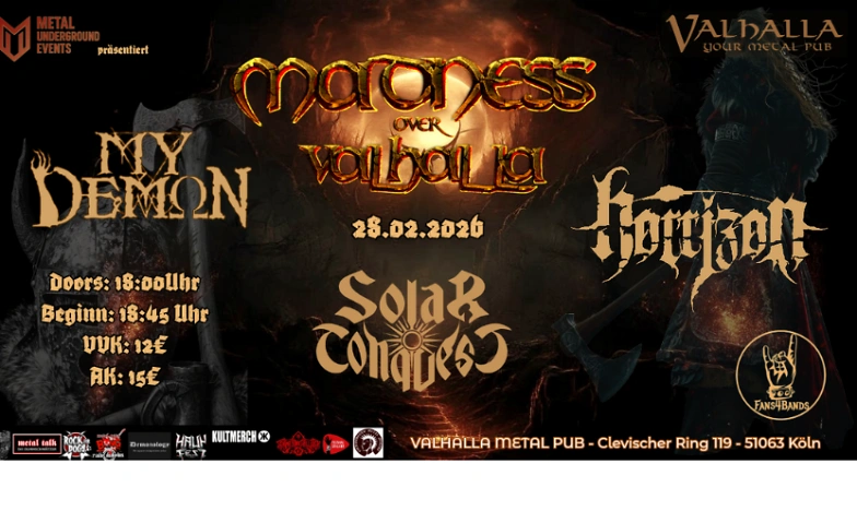 MADNESS OVER VALHALLA Februar 26 Valhalla Metal Pub, Clevischer Ring 119, 51063 Köln Tickets